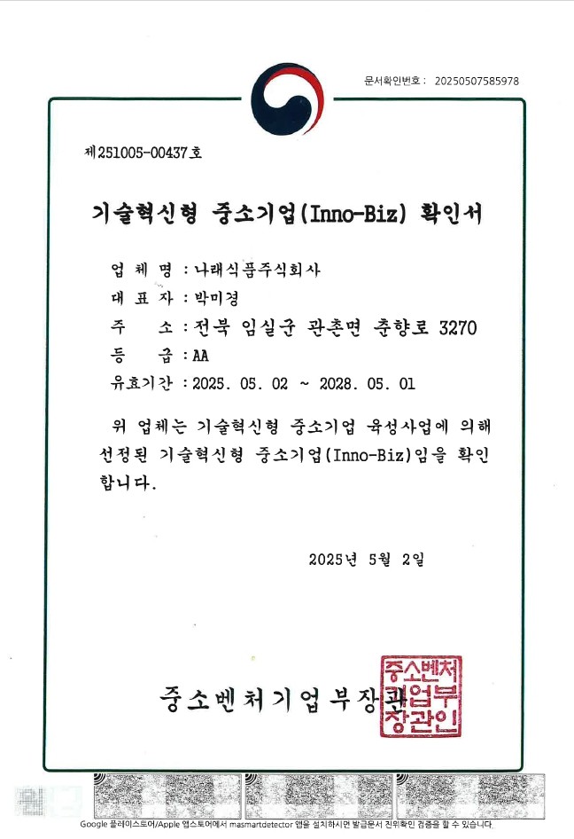 나래식품(주)는 항상 정직한 맛과 믿을 수 있는 최고의 품질을 추구합니다.